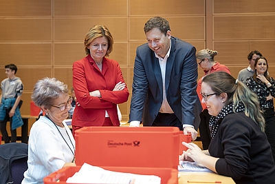 Saskia Esken und Norbert Walter-Borjans sollen die SPD in die neue Zeit führen. Das haben die Mitglieder entschieden. Die kommissarische SPD-Vorsitzende Malu Dreyer gratulierte beiden und dankte dem unterlegenen Team Klara Geywitz & Olaf Scholz. „Wir sind uns einig: wir bleiben zusammen. Wir sind eine SPD.“